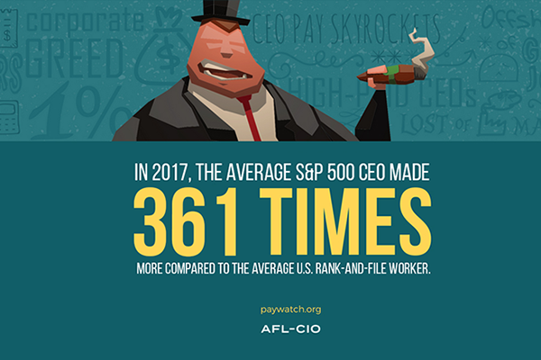 Once again there’s more for them and less for us. The imbalance between the pay of CEOs and working people continues to increase. In 2017, CEO pay at S&P 500[…]